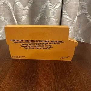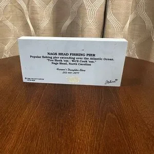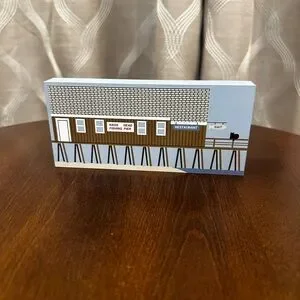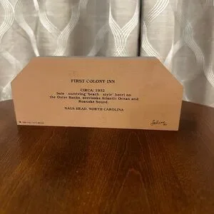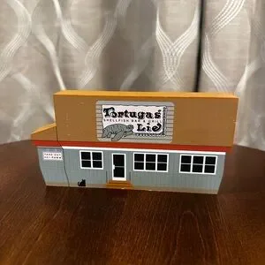 Charming set of three “The Cat’s Meow” Series decorative wooden buildings. Featuring “Tortugas’ Lie Shellfish Bar and Grill,” “First Colonial Inn,” and “Nags Head Fishing Pier.” All located in Nags Head, North Carolina