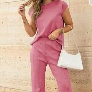 NWT Dusty rose classy, stylish yet very comfortable 2 piece knit set of 100% viscose. Very stretchy for a day out or lounging at home.