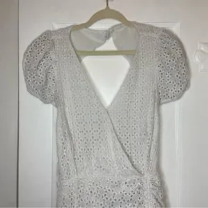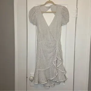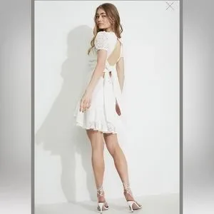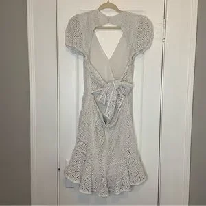 Bardot Nadia Tie Back Mini Eyelet Dress in ivory white size 12