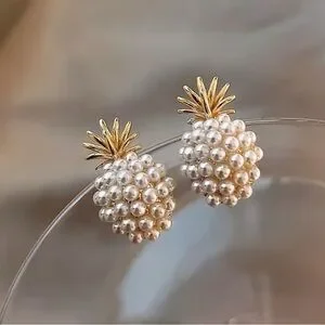 Pearl pineapples with gold hardware. Push back post.