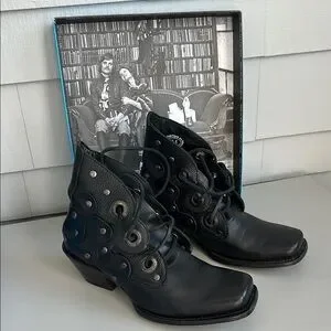 Step out in style with these chic black leather boots. Perfect for any occasion, these boots offer both comfort and style. Rare and are in wonderful condition !!