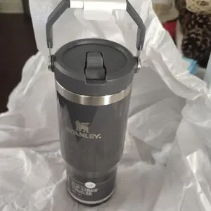 Stanley flip straw tumbler in stylish charcoal. Ideal for easy hydration.