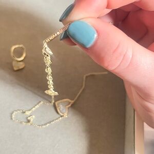 Kendra Scott Ari Heart Gold Necklace and Huggie earrings in Iridescent Drusy