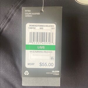 Under Armour long sleeve shirt in black. Features a sleek design with a high collar. New with tags. Women’s large.