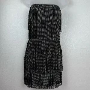 Area Stars Black Strapless Fringe Mini Dress Size X-Small NWT
