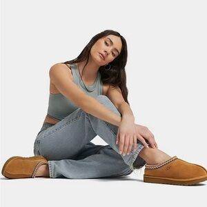 UGG Brown Cozy Suede Slippers with Knitted Trim