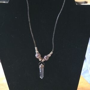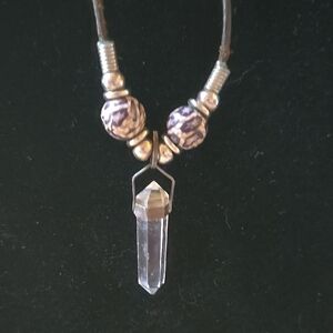 Elegant necklace featuring a clear crystal pendant and decorative beads. Perfect for adding a touch of sophistication.