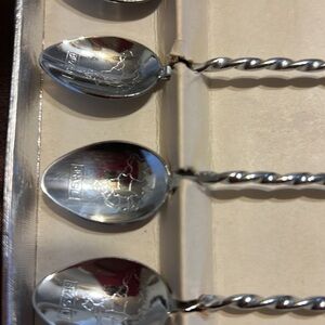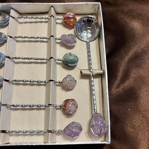 Beautiful set of little spoons. Vintage but great condition. Silver plated with gemstones. Just Beautiful. Use them for coffee, tea or just decorative purposes. Comes in original box. Please see pictures for references.