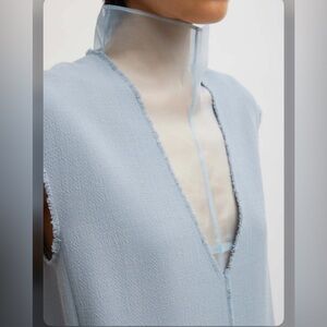 NWOT TIBI MELEE CREPE V-NECK DRESS WITH ORGANZA LINING - LIGHT BLUE Size 2