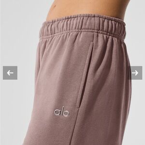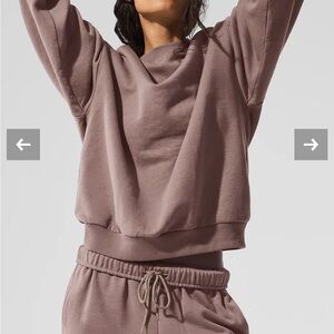 ALO Yoga MED Accolade crew sweatshirt and matching straight leg pants. Mushroom