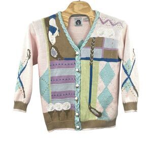 Storybook Knits Women's Cardigan Sweater Golf Novelty Argyle Button Colorful 1X