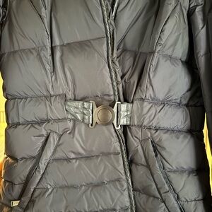 Stay warm and stylish with the DKNY Women’s Navy Puffer Jacket. Perfect for chilly days, this jacket combines comfort and fashion effortlessly. Belt clasp and zipper.