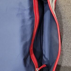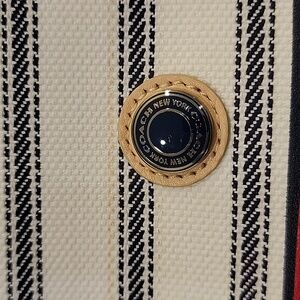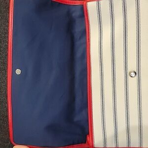 Coach St James Legacy rare limited edition fabric red white blue striped clutch lined and finished with beautiful red leather. Interior is perfect blue fabric.