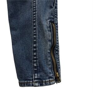 Pre-owned, gently used, small spot on front leg, faux front pockets, please see photos for measurement details. Waist measurement is 11 1/2" laid flat.