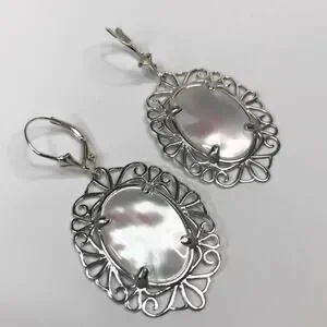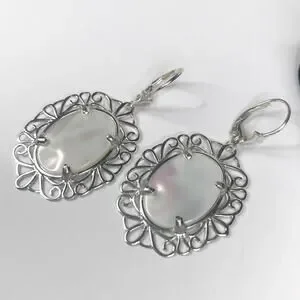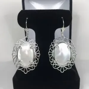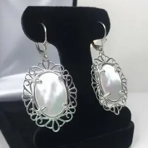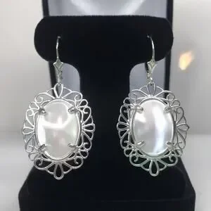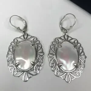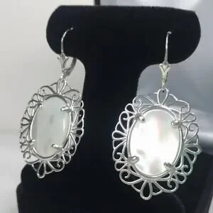 Beautiful Mother of Pearl Earrings in Sterling Silver 2 inch
