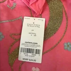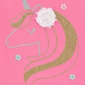 Ruffle short sleeve. Gold glitter unicorn graphic. Crew neck. Size 4
