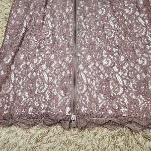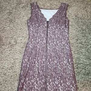 This beautiful knee-length floral lace dress from Adrianna Papell in Purple will have you confidently turning heads. The intricate floral lace detailing and bateau neckline along with short sleeves give this sheath dress a timeless and elegant look. Perfect for any formal or casual event, the dress is made up of 56% viscose and 44% nylon material with lace as fabric type, making it a comfortable and breathable choice. The dress is a size 6 and is regular in size with a beautiful floral theme that will make you feel sophisticated and radiant.