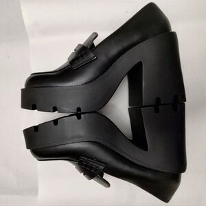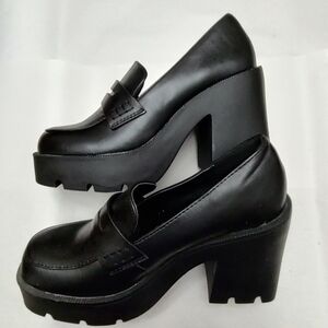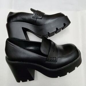 Just Fab Cher Heeled Lug Sole Loafers Black Caviar Chunky Platform Ladies 6.5