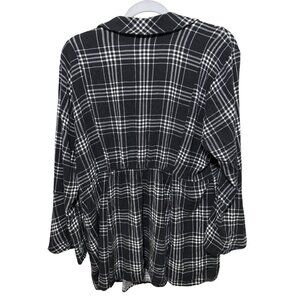Shop the Torrid Fit and Flare Rayon Slub Button Front Top in Midweek Plaid Deep Black. Pre-owned, size 2 (18-20), perfect for all seasons. Made from a comfortable rayon/spandex blend, this stylish top is in good condition and is SOLD OUT on the Torrid website. Ideal for women’s fashion lovers looking for unique, high-quality pieces.