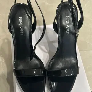 These elegant black heels from Nine West feature a sleek slingback design with a square open toe. The high thin heel adds a touch of sophistication, making them perfect for formal occasions.