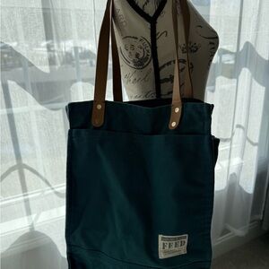 Deep Teal Farmer’s Market Tote Bag with Brown Straps