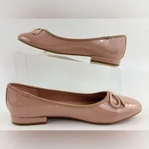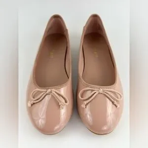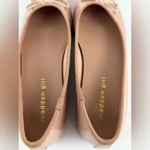 Madden Girl Beige Ballet Patent Leather Slip-On Flats, Women's size 7M, Bow Tie
