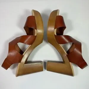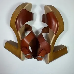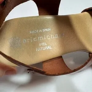 Step out in style with these Eric Michael brown leather platform sandals. Made in Spain, these sandals feature a comfortable block heel and crisscross straps. The natural leather adds a touch of sophistication to any outfit. Perfect for a day out or a night on the town, these sandals are a must-have for any fashion-conscious woman.