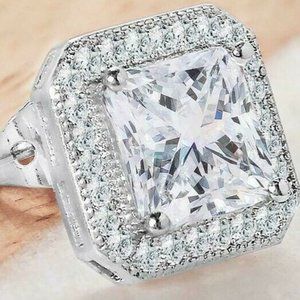Princess: 1mm round accent stones, 6mm princess-cut center stone