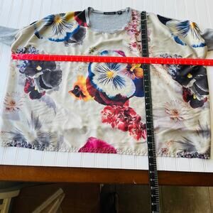 Satin front knit backside and sleeves. Review measurements photo. Has a pull as pictured.