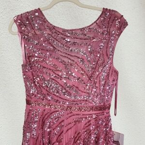 NEW MAC DUGGAL $598 PLUM CAP SLEEVE EMBELLISHED SEQUINS EVENING GOWN #5445