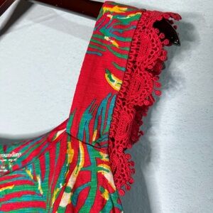 Like new condition from smoke free home. Beautiful bright colors. Lace trimmed tank sleeves.