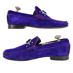 Donald J. Pliner Italy Dacio 2 Purple Indigo Suede Bit Loafers Men 8 Dress Shoes