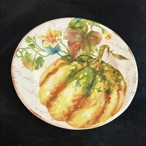 Beautiful decorative plate by Pier 1. 9” salad plate. Discontinued plate is featuring a vibrant pumpkin design. Perfect for autumn decor. Dishwasher and microwave safe Plate in excellent condition no chips cracks or glaze ing