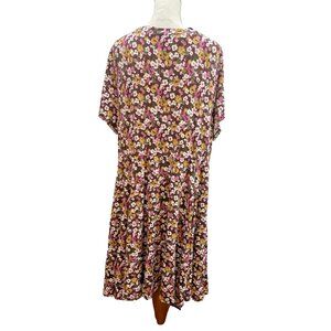 Torrid Super Soft Knit Dress Burgundy Pink Floral Pockets Ruched Womens Size 3