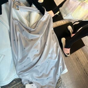 CHANEL limited Coco Beach CC logo metallic Swimsuit. Brand New. Size 38.