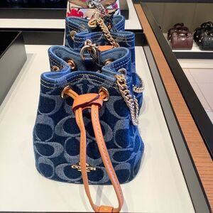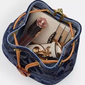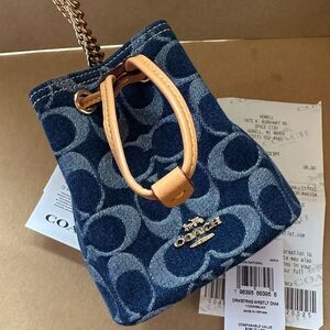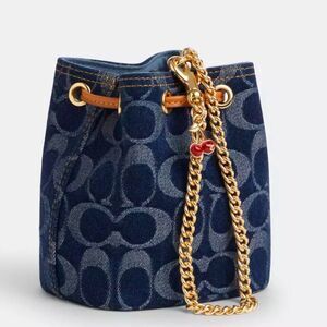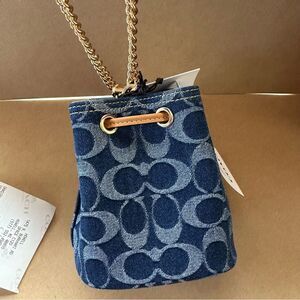 NWT❤️ Coach Drawstring Chain Wristlet Bag Signature Denim Wallet Purse CZ031