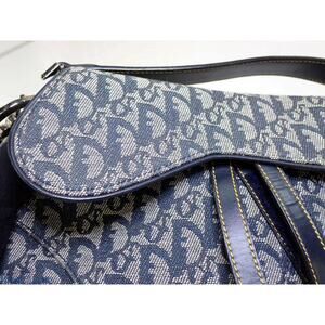 Christian Dior Saddle Bag Vintage Trotter Blue Diorissimo Shoulder Purse Oblique