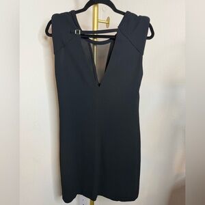 NWT Zara Black V-neck dress with mesh covering the bust area, along with a deep v in the back with a strap and gold toned buckle.