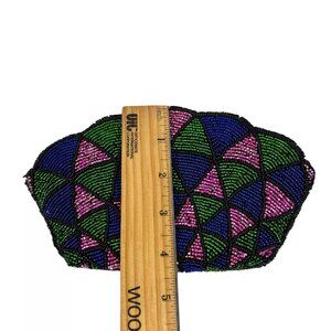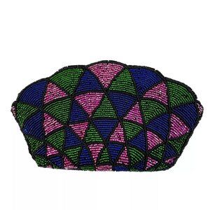 Vintage 80's Neiman Marcus Hand Beaded Shell Shaped Geometric Clutch With Zipper
