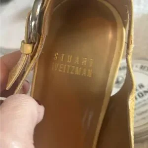 Stuart Weitzman Yellow Peep-Toe Buckle Flats