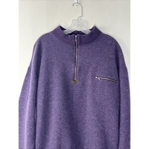 LL Bean Vintage Wool Blend Sweater Mens Large Purple 1/4 Zip Mock Neck Pullover