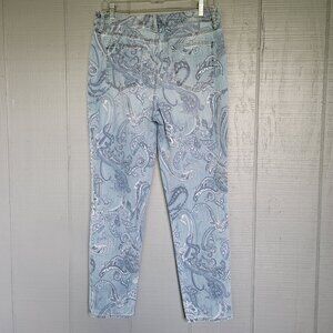 Chico's So Slimming Paisley-Print Girlfriend Slim Leg Ankle Jeans. Size …