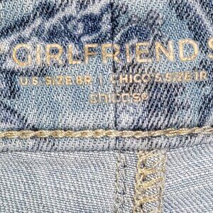 Chico's So Slimming Paisley-Print Girlfriend Slim Leg Ankle Jeans with High-Waisted, 5-pocket, Zip and Button Closure.