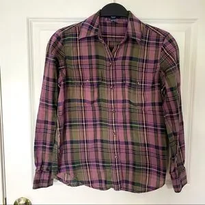Chaps Plaid Button down shirt featuring double pocket 100 % Cotton Size XS A