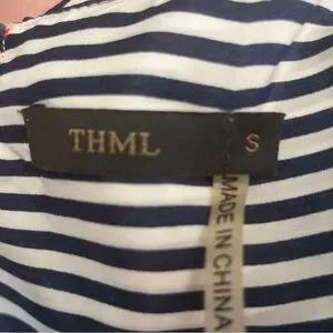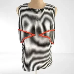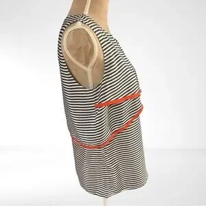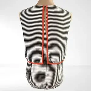THLM Navy and White Striped Blouse with Orange Piping Detail EUC Size Small