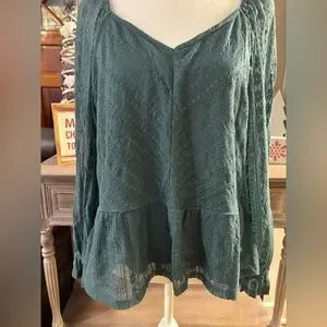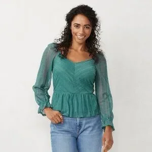 NWT LC Lauren Conrad Puff Sleeve Lace Peplum Blouse