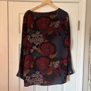 LOFT Red Poppies Floral Long Sleeve Top Blouse