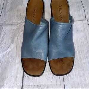 Enzo Angiolini blue and brown mules