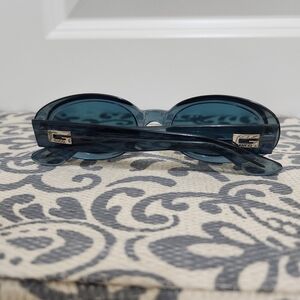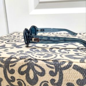 These are beautiful vintage Gucci sunglasses. The silver hardware is the perfect accent to the demure blue. Elevate your style with these chic blue oval sunglasses. Perfect for any occasion, these sunglasses offer both fashion and function.