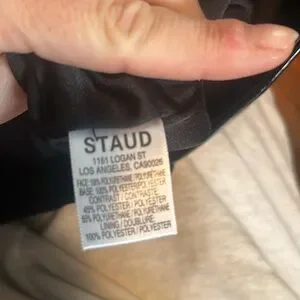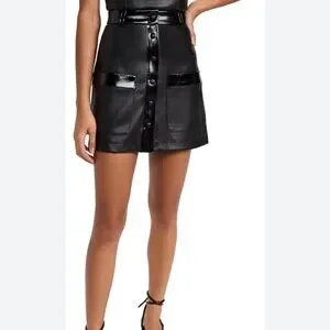Staud black paper faux leather snap button skirt NWOT sz 8